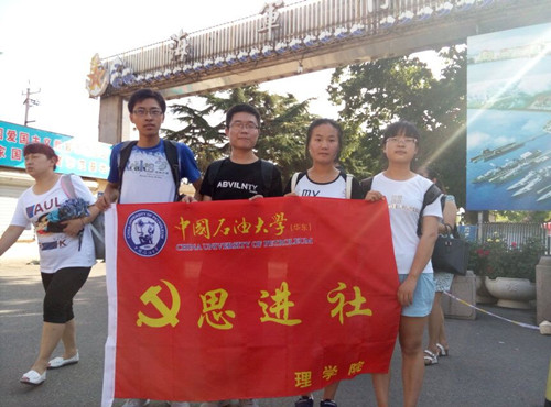 恰逢中国人民抗日战争暨世界反法西斯战争胜利70周年,为深入学习贯彻党的精神,倡导广大青年学生应在深入社会、了解国情、接受锻炼的过程中培育和践行社会主义核心价值观,再踏红色足迹,追忆革命岁月,缅怀革命先烈。8月15日,中国石油大学(华东)理学院思进社筑梦起航践队5名队员寻访红色足迹,再走博物馆,再访老革命人。一同追寻那段屈辱历史,聆听革命老区的故事,学习革命先烈的精神。挥洒青春热血,争做时代领路人。