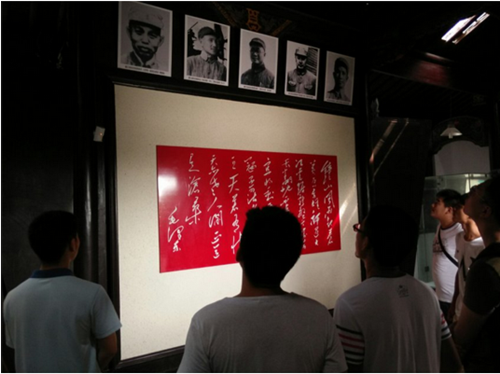 之后王爷爷就开始讲起他和纪念馆的故事了。当时的瑶岗村民并不知道这里被设为总前委,更不知住在这里的青砖瓦房里的就是邓小平,陈毅这些大人物。一直过去三十多年,都没人真正证实这里就是指挥渡江战役一百万大军的总前委。只是偶尔有人猜测过,但并没有多少人相信。知道三十多年后来到八十年代,刚刚从学校退休的王爷爷决定追寻真实的历史。之后王爷爷和一样学校退休的蒋爷爷一起想当地政府请求援助,在没得到援助的情况下艰难的四上北京,到各个机关里查询资料。最终证实了瑶岗就是渡江战役总前委的地址,回来着手开始纪念馆的建设。这是,资金又成了问题。通过向当地政府,向南京,向上海,向杭州的请求后终于得到建设纪念馆的资金。王爷爷他们真是千辛万苦才建设起这个纪念馆的。