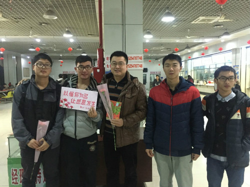 11月21日和22日,为了感谢所有老师辛勤的付出,数学1501班在课间为老师们献上美丽的鲜花和同学们精心手绘的贺卡,希望能够让老师们在辛苦教学的同时感受到同学们真切的关怀和感恩。老师们在喜悦的同时也表达了为同学们的感谢。在感恩老师们的同时,数学1501班的同学们也不忘为值班室的阿姨们带去感恩节的一份祝福,在鲜花和贺卡中,阿姨们都露出了可爱的笑容。
