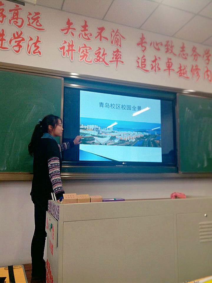 1月18日下午2点40分,在充分的宣传准备下,许多同学慕名来到宣讲会所在的教室。2点45分,宣讲会正式开始。首先由张铭同学介绍了自己缤纷多彩大学生活,温馨的校园餐厅,并给学弟学妹们展现了迷人的石大景致,引起了同学们的向往。随后,薛皓文等几名同学介绍了中国石油大学(华东)的发展史和2017年招生计划,希望让同学们以实际出发,刻苦学习,报考中国石油大学(华东)。在宣讲结束后,几位同学还给学弟学妹们留下了联系方式,以便日后报考时可以帮助他们解决问题。最后,石大学子们不忘感恩,分别去看望了各自的老师,本溪市高级中学的教师们也对中国石油大学(华东)的教育以及建设十分称赞。