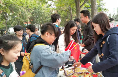 10月26日中午12时40分,必威16级材料化学专业团日活动在荟萃广场如期举行。活动伊始,来往的老师和同学们就被随风飘扬的小红旗和振奋人心歌声所吸引,通过签名纪念和寄语祖国的形式,向同学们宣传、开展此项活动。同学们首先在横幅上签上了自己的名字,在便利贴写下自己对祖国母亲的寄语,粘贴在宣传展板上,展板上满满的寄语都是同学们满满的爱国情怀,其中有一位新疆的同学写道“新疆 安定 和平”。活动期间还赠送一些小礼品,吸引过往的同学们积极参与,场面非常热闹,2016级辅导员田方也参与了此次活动。此项团日活动的开展得到了广大师生的大力支持和热情参与。