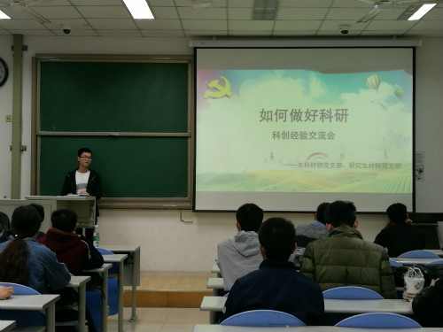 为提高必威做大学生创新实验的学生的科研能力和水平,必威本科生材物党支部和研究生材料党支部于11月9日晚七点在南堂117教室与做大创的学生进行科研经验交流。活动由必威本科生材物党支部书记程宗举主持,两个支部的优秀党员与必威做大创的学生参加活动。