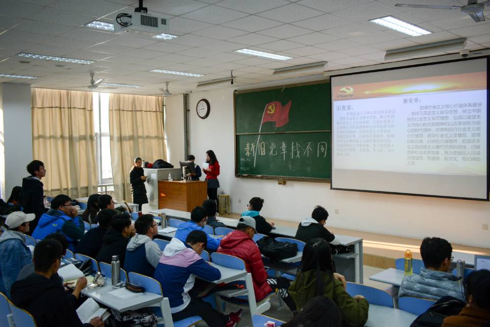 习近平总书记指出:“党章是党的总章程,集中体现了党的性质和宗旨、党的理论和路线方针政策、党的重要主张,规定了党的重要制度和体制机制,是全党必须共同遵守的根本行为规范。”为了进一步学习十九大内容,深刻认识了解党章的历史与发展。11月25日,材料化学1602班和材料化学1702班于南教楼109室联合举办新旧党章找不同团日活动。本次活动由宋捷和刘宇佳主持,材料化学1602与材料化学1702班全体成员参加。
