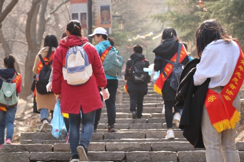 活动伊始,由部长韩吉星带队前往珠山国家森林公园,进行珠山景区净山活动。参加活动的志愿者分为两支队伍,沿着不同的路线进行净山活动,一起走入珠山发扬志愿服务精神,保卫周边环境。