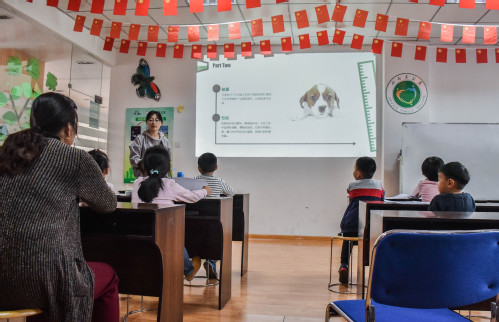 课程伊始,一段《爱宠大机密》的视频吸引住孩子们的目光,“这只小兔子好可爱呀!”“小狗快跑,别被追上了!”大家跟着情节发展一起兴奋,一起紧张。接着,志愿者将视频中出现的动物们的真实相貌、生活习性进行介绍,使孩子们对身边的动物有更深的了解。随后,志愿者们通过分享自身与小动物的经历鼓励孩子们踊跃发言,与孩子们打成一片,课堂里充满了欢乐的气氛。课程最后,孩子们画出自己喜欢的动物,并上台分享选择最喜爱动物的原因以及画中想表达的内容,课堂在孩子们的掌声中落下帷幕。“这个活动给我们家孩子提供了一个学习新知识、结交新朋友的地方,也让我能够放心地去工作或者参加别的活动。”一位家长称赞到。