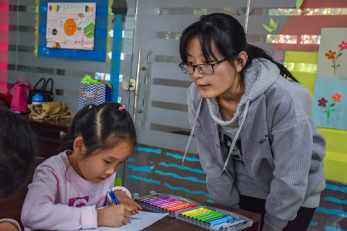 (教孩子画画 尚玉鑫摄)
