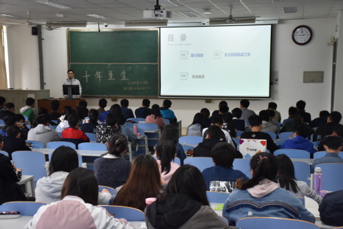 活动伊始,伴随着歌曲《爱与希望》,王璐带领全体人员回顾十年前的那场大灾难,歌曲让人想起那些夜晚在广场点燃荧荧烛火的人们,悼念之中向远方轻声许下祝愿,但愿“明日推开窗,就能看见晴朗”。王璐表示,那场灾难带来的伤痛依旧,但其中还蕴育了希望;我们不会忘记过去,但我们更要面向现在。同时,她引用微信平台的安全教育推文,向与会人员普及安全知识,树立安全意识。随后,大家一同观看并学习“长大我要当空降兵”——程强、“抗震救灾小英雄”——贾孝龙等曾经的遇难人员,十年后重获新生的经历。接着,全体起立为十年前遇难的人们再次默哀,致以沉重的哀思。最后,刘威进行活动总结,他再次表示对遇难人员的哀悼,并强调学生们的宿舍安全、交通安全、网络安全等问题,要求大家做好安全防范工作。