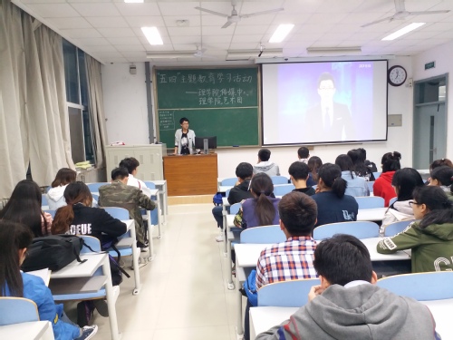 活动伊始,廖枚顺向与会成员介绍了五四精神对当代大学生的内涵,通过介绍古至今来知识分子的操守及五四精神的发展历史向与会成员阐述了当代大学生应该有的信仰和操守。“当代大学生要立高远瞩,通观全局,认清形势,确定目标”,廖枚顺还通过大学生职业规划相关社会调查数据反应的问题告诫与会成员当代大学生更应该践行五四精神,心怀国家,不为个人利益驱使而放弃信仰。随后,廖枚顺带领与会成员观看党中央纪念马克思诞辰200周年会议录像。最后,他强调了作为新时代大学生,应努力学习,充实自己,为国尽忠,牢记自己的使命。