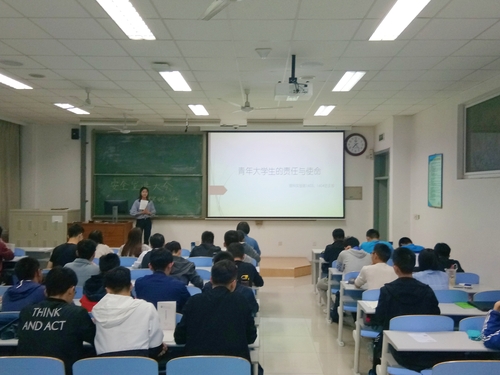 会议伊始,同学们认真听取徐喆对五四运动和五四精神的介绍,并分别发表自己对五四精神的认识。接着,徐喆就“青年大学生的责任与使命”发表演说,并指出,2018年3月22日,美国总统特朗普正式签署总统备忘录,依据“301调查”结果,将对从中国进口的商品大规模征收关税,涉及征税的中国商品规模可达600亿美元,挑起中美贸易战。这是一个充满机遇的时代,又是一个不平凡的时代,作为当代大学生的我们,更应发扬五四精神,努力增强自身的实力,为祖国献上一份自己的力量。正如习近平总书记所说:“人生的扣子从一开始就要扣好、青春是用来奋斗的,青年要为世界进文明,为人类造幸福,以青春之我,创建青春之家庭,青春之国家,青春之民族,青春之人类,青春之地球,青春之宇宙,资以乐其无涯之生”。