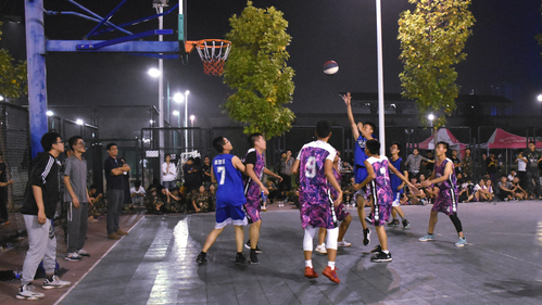 活动伊始,双方队员纷纷入场,并在中场线站好,保持着抢球的姿势。随着裁判的一声令下以及球的抛起,球赛正式开始。球赛共分为四小节。在球赛的每一节中,双方保持着不分上下的比分。随着时间的推移,比赛愈发的进入到白热化阶段,双方的角逐愈发的激烈,各种帅气的上篮、默契的配合、紧密的联防和篮板下惊险的抢夺纷纷出现,而随之出现的便是篮球场边上观众的呐喊助威声,双方的队员都全力以赴。最终,双方以微弱的分数差分出输赢,并在裁判的组织下,双方队员拍手示好。