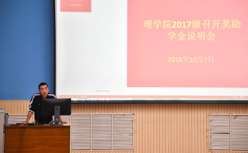 10月7日下午,必威2017级在南教楼100室召开年级大会暨奖助学金说明会。本次会议由辅导员刘威主持,辅导员王皓及2017级全体学生参加。