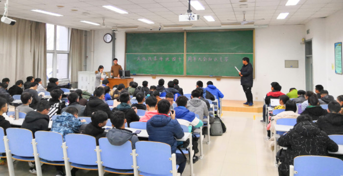 本次活动分为主题演讲及知识竞答两个阶段。首先,光电1801班团支书李政彦作演讲“让我们携手并肩,开启下一个辉煌的四十年”。他在演讲最后发出了掷地有声的口号,引起全场热烈的掌声。改革开放知识竞答包括选择题、填空题两部分,主要考察改革开放40周年大会中习近平主席讲话的重要内容,设置一、二、三等奖,且备有相应的小奖品。作答完成后,光电1801班团支书乔良欣发表演讲,再次号召学生们“刻苦学习,奋发向上,为祖国的改革开放、民族的伟大复兴作出贡献”,最后由耿志轩宣读获奖结果。钟嘉晨表示:“改革开放给中国带了来巨大的影响,作为当代大学生,应该了解和运用习近平总书记在改革开放四十周年大会上的讲话。这次活动,很有意义,提醒当代大学生要尊崇历史,顺应时代潮流。”