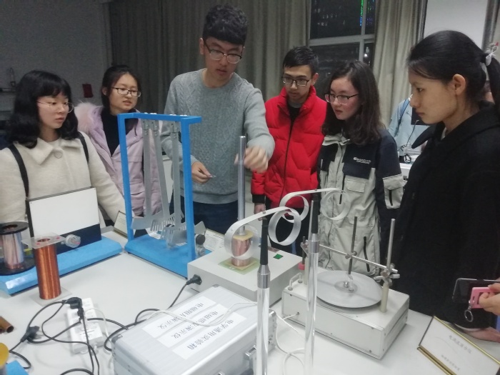 参观活动伊始,刘树钰结合PPT向学生具体介绍了物理演示实验室。他提到了实验室获得的各种奖项以及其他实验室成员取得的各种成就,并表示实验室十分欢迎新鲜血液的加入,鼓励对此有兴趣的学生积极报名。随后,学生跟随刘树钰开始参观。他向学生介绍了有关仪器的原理及其工作过程,并演示了操作方法。在取得同意的前提下,学生亲自动手实验,并和周围学生其余人分享自己的体验感受。在参观过程中,各种仪器让学生感受到了实验室的魅力所在,并使学生真正认识了物理知识的力量。