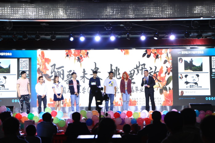 晚会由宗思宇、王风涤带来的歌曲《飞云之下》开场,富有动感的节奏瞬间引燃全场。光电1502班的舞蹈串烧《舞动青春》,以富有动感的音乐、轻快的舞步,展现当代大学生的青春活力;信息1502班徐天浩的歌曲串烧《最后一次点名》,用点名的形式,回忆大学四年平凡而又难忘的课堂生活,再现课堂中那些看似不起眼而实则印象深刻的场景;节目之间穿插的游戏互动环节,激发了观众的参与热情,活跃了现场气氛;“四年时光里,你我朝夕相伴,那些浪漫的回忆中时刻有你。”化学1501班带来的小品《创造202特别节目》以生动有趣、幽默诙谐的语言和富有感染力的舞蹈表演,将全场气氛推向高潮。在晚会的尾声,2015级的辅导员们依次上台致辞,表达了对学生的不舍之情及美好祝福。