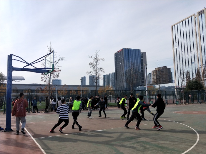 活动伊始,数学1702班团支书安静讲解活动规则。在队员们进行篮球比赛时,其余团支部成员为各自团支部队员欢呼加油。中场休息时,在团支书安静和石磊超的带领下进行中场活动。首先进行罚球大赛,两个团支部各自出十到十五名选手,自愿报名,非比赛人员优先,每人罚五次,投中一球积一分,最终积分多的团支部获胜。同时,罚中个数最多的个人获得“罚球大赛冠军”。接着进行三分球大赛,不限人数,在五个指定位置各投两个三分球,最终投中个数最多的个人获得“三分球大赛冠军”奖项。最后进行投沙包游戏,每队六个人,最终坚持最长时间被淘汰的班级获胜,由团支书安静带领进行。陈李勐说:“此次活动,极大丰富了团支部成员的课余生活,同时提升了团支部凝聚力。另外自从大三没有体育课之后,运动量下降了许多,此次活动正好可以让我们锻炼身体。”