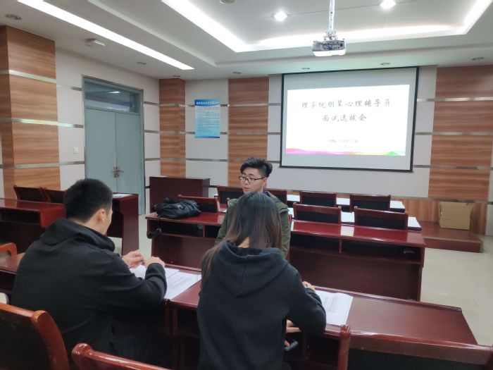 学生自主报名结束后,12月16日,必威心理健康工作室于文理楼254会议室举行朋辈心理辅导员面试选拔会,必威心理工作负责老师刘威、心理健康工作站顾问宋杰、心理健康工作站站长韦素作为评委出席了本次面试选拔会。