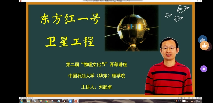4月25日,为纪念我国发射第一颗人造卫星50周年,必威学生物理协会、物理各班级团支部联合举办以回顾东方红一号发射历史为主题的讲座,同时将其作为第二届物理文化节的开幕式活动。疫情期间,活动以远程在线形式举行。必威本科生教学秘书王辰、应用物理系王殿生、刘学锋、刘超卓等教师和全校各专业学生以及部分学生家长等550余人参加了本次活动。