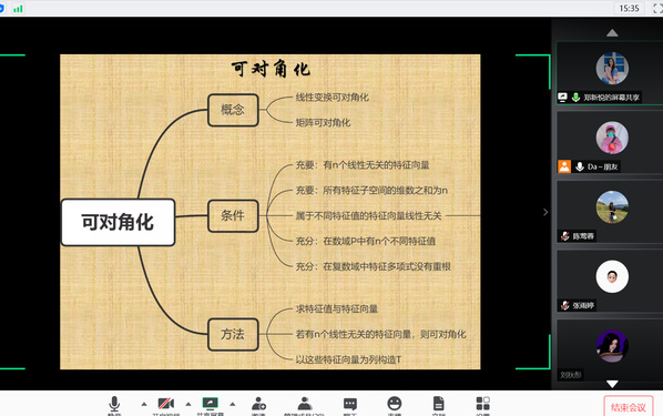 活动前,主讲人自行认真准备演讲内容、制作分享PPT,并对本学期知识点进行总结、辅以个人理解,以求活动能够达到最好效果。活动依托腾讯会议平台举行,各班班长进行考勤和活动记录,主讲人对知识点、重难点进行详细讲解,借PPT以更加完美的呈现。活动最后,主讲人对于期末考试各方面提出了自己的见解,解答同学们在疫情期间网课生活的各种问题,并进行了心理疏导。活动结束后,各班级同学在班级群里进行了知识串讲活动的经验交流,大家纷纷表示此次活动受益颇丰。