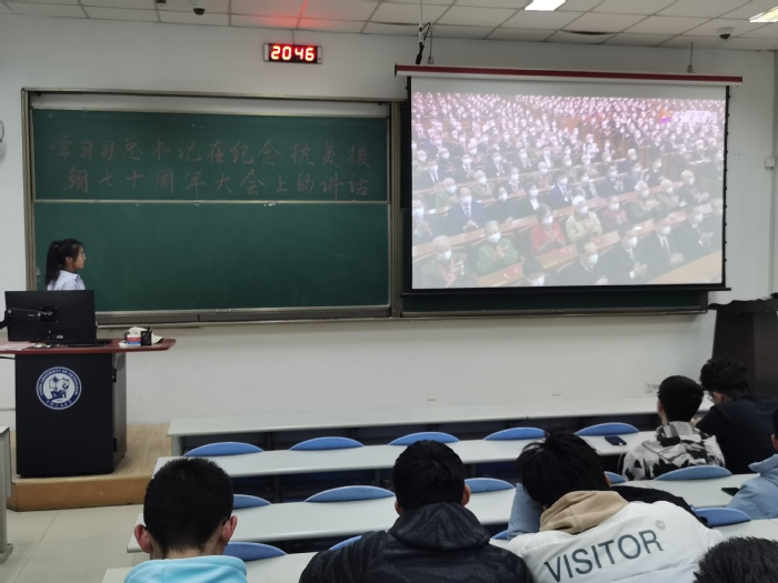 习近平总书记在纪念中国人民志愿军抗美援朝出国作战70周年大会上的重要讲话,对弘扬伟大抗美援朝精神的有力动员,对历史经验和长远教益的总结与启迪。通过观看本次讲话,让理科实验班的全体同学铭记与缅怀了历史功勋和革命英烈,深刻理解了对抗美援朝战争伟大意义。随后,同学们在观看讲话后展开了热烈讨论,全面准确领会了习近平总书记重要讲话精神,并进行了积极发言。让同学们更加深刻地感悟抗美援朝历史性决策的正确性,感悟抗美援朝战争伟大胜利带来的深远影响,感悟立足新的历史起点从抗美援朝战争中汲取强大精神动力、实现“两个一百年”奋斗目标的意义所在。在活动的最后,常爱敏提出,学生们担负国家与学校赋予的崇高使命有着重要意义,所以学生们要在担当中历练,在尽责中成长,努力让青春在新时代中闪光。