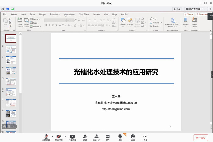 12月8日,必威利用腾讯会议在线举办了“名师有约”第100期活动,来自克莱姆森大学的研究领域为新兴微量污染物的去除和污染的副研究员王大伟博士为我校热爱光催化水处理技术的师生进行了题为《Photocatalysis on water treatment》的学术报告,本次活动由我校曾景斌教授主持。