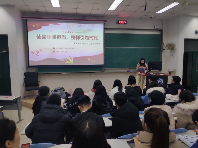 为深入学习贯彻习近平新时代中国特色社会主义思想和党的十九大精神,深入推进“两学一做”学习教育常态化制度化,12月25日,必威研究生化学学生党支部在东环103室组织观看《榜样3》专题节目。此次活动由支部成员王春芬同志主持,支部党员、预备党员和积极分子参会。