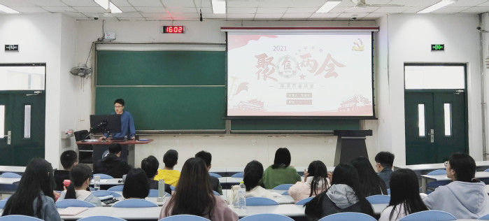 会议开始,尤金宇向大家介绍两会的基本概述和日程表,着重讲解分析两会重点看点和热门话题,并阐述了政府工作报告。随后,宋广成向大家分享了习近平总书记在全国脱贫攻坚总结表彰大会上的讲话,通过展示脱贫攻坚楷模事件和在脱贫攻坚中所取得的成就进一步阐述了中国特色减贫道路、反贫困理论以及伟大脱贫攻坚精神,汇报结尾,到场党员思考并讨论了在助力脱贫攻坚,推动乡村振兴中大学生的做法。最后,尤金宇就总体会议进行概述总结,进一步强调了深入学习贯彻习近平总书记两会期间的重要讲话精神以及习近平总书记关于扶贫工作的重要指示,提出了作为当代青年大学生,我们更应做到不忘初心,砥砺前行,时刻准备接过历史的接力棒,以时不我待、只争朝夕的精神投入到今后学习生活工作中。