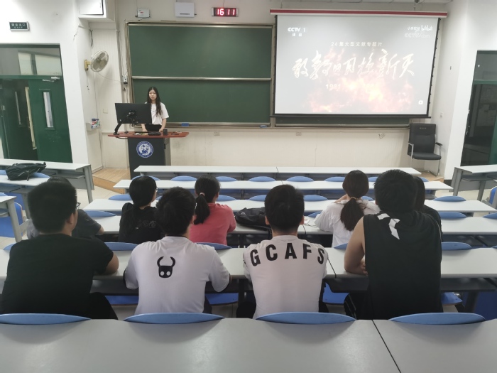 下午4时,支部成员准时于东环302就坐完毕,活动正式开始。首先,孟新先对专题片《敢教日月换新天》作了简要介绍。该片是2021年中央广播电视总台推出的24集大型文献专题片,选取中国共产党从登上历史舞台到掌握全国政权、从社会主义建设到领航民族复兴的一百年,以娓娓道来的方式,带领观众真切感受建党百年来艰辛而伟大的历程。介绍完毕,孟新放映专题片第一、二集,并组织支部成员耐心观看。观看结束后,孟新引导支部成员积极讨论并发表感想。闫新彤表示:“中国共产党的建立改变了中华民族前进的方向和进程,照亮了中国人民前进的道路。作为一名中共预备党员,我更加认识到了自己要肩负的使命,我会坚持奋斗,争做有为青年。”
