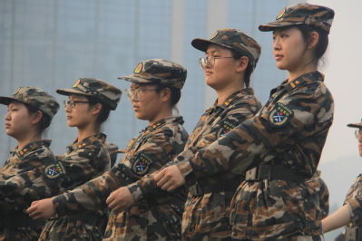 下午,由于天气原因,集合时间推迟至下午两点四十分。按照计划,进行“分列式”训练。在近三十摄氏度的高温天气下,同学们依然坚持训练,在教官与辅导员老师的带领下,反复练习,动作更加连贯标准。