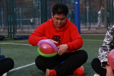 当天下午,班级成员陆续抵达足球场,围绕一圈分享零食。随后,团支书陆瑶带领大家进行“爱的抱抱”、“数字炸弹”小游戏,游戏失败者进行“真心话大冒险”的惩罚,整场过程中同学们积极热情、神采飞扬。下午四时,班级成员前往荟萃苑三楼包饺子,食堂的工作人员准备好饺子皮与馅。在简单的布置后,到场的男生女生们纷纷挽起袖子,跃跃欲试。有的同学熟练地放馅料、蘸水、捏饺子,有的同学现学现卖,十指翻飞之间,一只只精巧的饺子就诞生了。