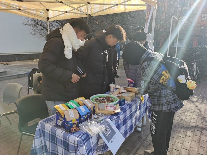 活动由科左后旗地方特色食品线下售卖、线上直播及书法表演三部分组成。首先由班长、组织委员组织线下售卖活动,团支部场地布置组、线下售卖组成员负责场地规划、商品布置、发放传单、宣传活动。活动初期,略显冷清,但在人员流动性强的餐厅门口,人来人往,活动逐渐火爆,远超预期。更多的人愿意为助贫贡献一份力量。班长谷泽丰表示,活动初期虽然辛苦,但想到活动助贫初衷,看到同学们的支持,一切都值得。
