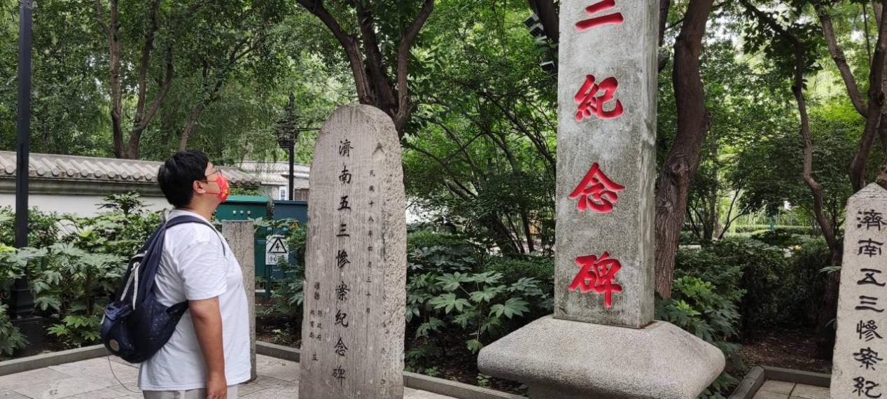 参观五三惨案纪念碑 朱一帆摄