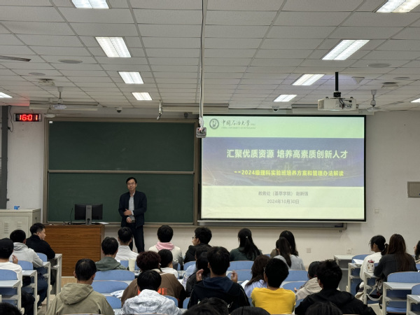 10月30日下午,理科实验班在南教213召开2024级年级大会。本次会议由理科实验班2024级辅导员刘威主持,邀请荟萃学院赵新强老师解读2024级理科实验班培养方案和管理办法,理科实验班2024级全体学生参加。