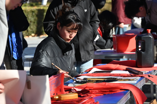 本次活动分为线上线下两个部分。线下开展知识问答、春联书写体验及定制春联领取活动。同时,线上活动在“理绘石大”微信公众平台举行,向全校师生征集专业特色对联。